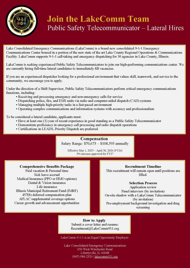 A career at LakeComm is a chance to make a real difference every day. As the link between the public and first responders, our team plays a critical role in protecting lives and supporting our communities.